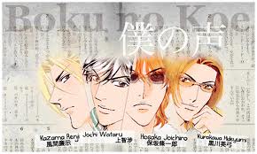 Blurb: A lifelong dream of fame and fortune has been the driving force of Wataru Jouchi’s entire life. Now, after much self-doubt, he’s decided to fulfill his destiny and become a voice actor for anime videos. At first, he is thrilled to discover that his long-lost friend, Renji Kazama, is considered a top star in the industry. But Kazama does not seem at all pleased about their unexpected reunion.